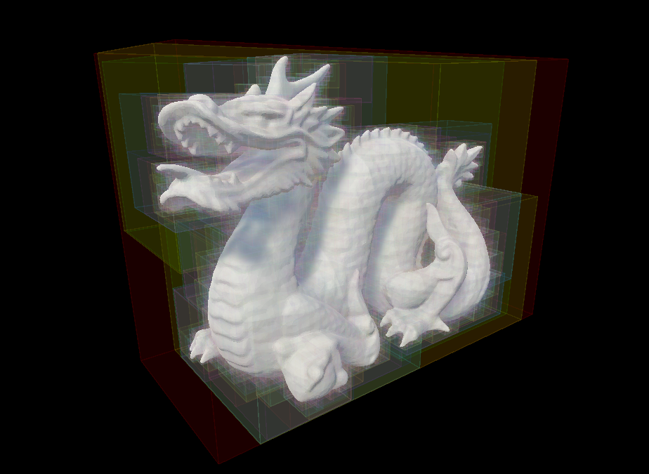 BVH는 공간을 분할하는 계층적 자료구조로, 메쉬의 폴리곤들을 클러스터링하여 AABB(축 정렬 바운딩 박스)를 미리 계산해둠으로써 물리 시뮬레이션이나 레이트레이싱에서 효율적인 필터링과 충돌 탐지를 가능하게 합니다. BVH를 자동으로 생성해주는 툴도 많고, DX12 레이트레이싱 API처럼 하드웨어적으로 지원되는 경우도 있습니다만, 공부하는 차원에서 한번 직접 만들어 보겠습니다.